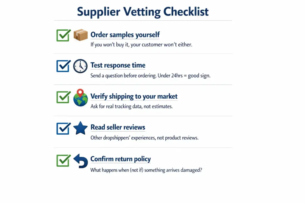 - 84% of new dropshippers say finding a reliable supplier is their biggest obstacle. Vet suppliers by ordering samples before listing anything.